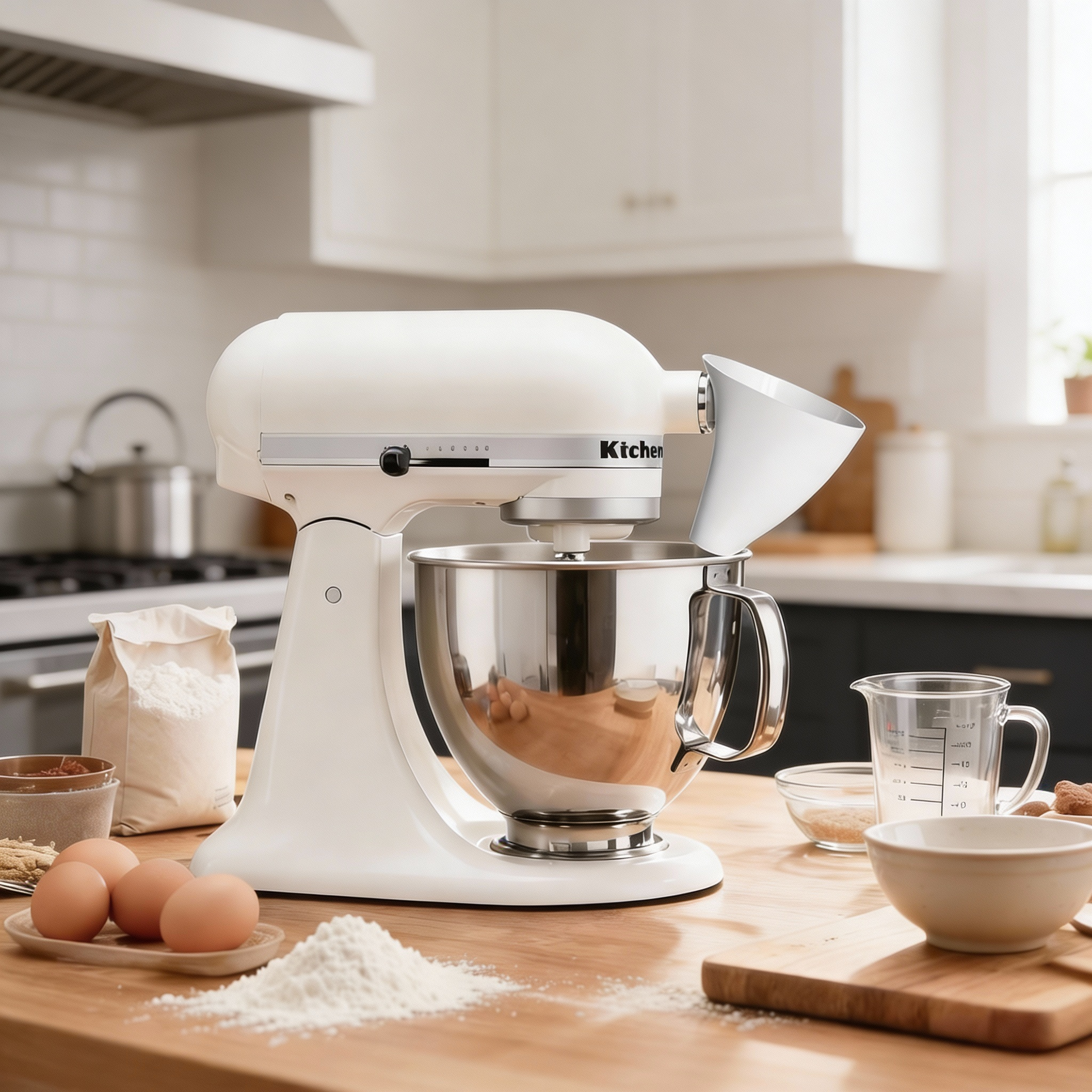 No-Mess Flour Funnel for KitchenAid Mixer – White